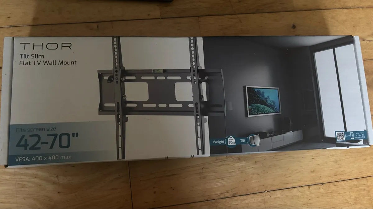 No stand. Includes brand new wall bracket.