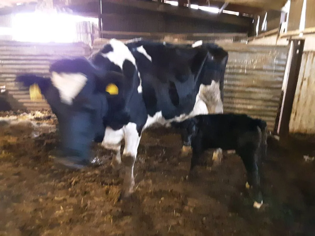 Freshly calved fresian cow with BB Heifer calf at foot. Suitable for rearing Calves
