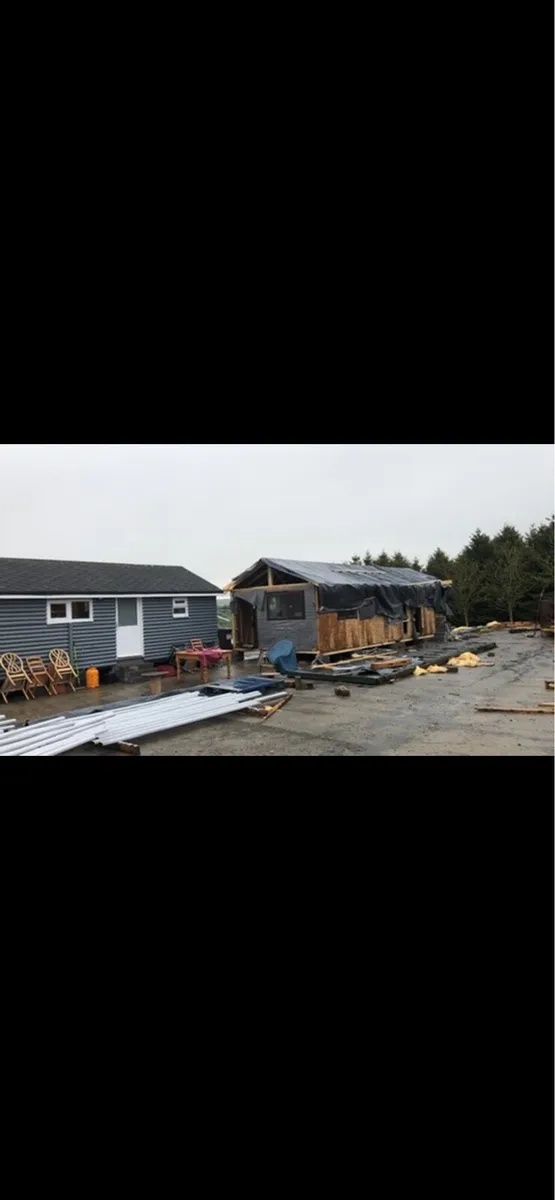 2 log cabins for sale . One cabin bought 6 years ago second hand , and second built from new . Both were joined together on site . Due for work reasons am now moving overseas . Was in the process of renovation to the older cabin as a renal , as seen in the photos . But now have decided to sell all . Need gone in 6 weeks . Photos also there of the new build of second cabin . No time wasters please . Sold as seen and transport is up to buyer . Rough guide . Older cabin cost 3 k to be craned and delivered from Wicklow mountains to Cavan . Both been sold together not separately. Cabin sizes are 10.5 meters x 3.5 meters . One cabin is open plan living with toilet . And other is bedrooms x3 with toilet/shower