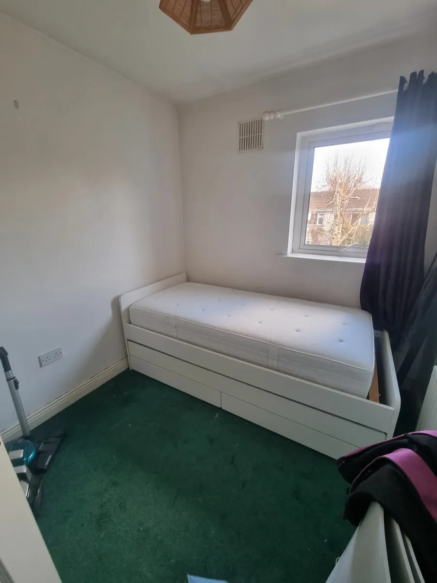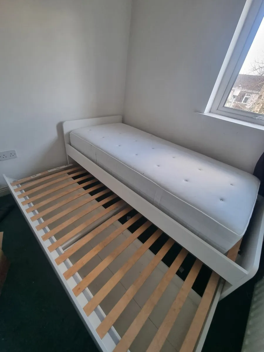 Ikea single bed with second bed compartment with one memory foam mattress on top. It's 250 euro but if you can collect it your self I'll drop 50 euro off it so 200 euro.