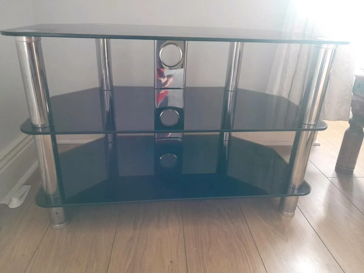 Black glass shelved TV stand as new.