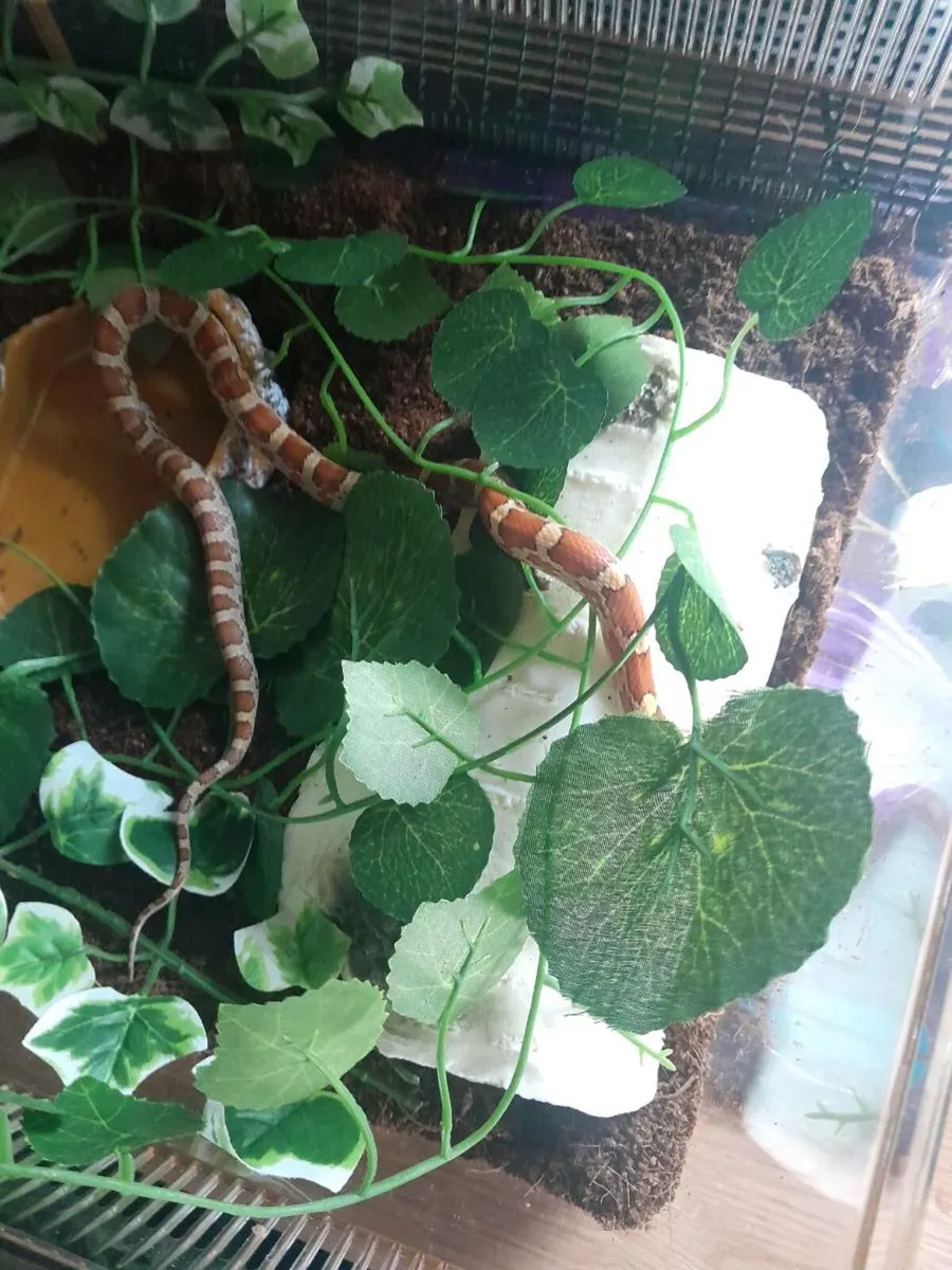 Beautiful orange female corn snake and large Exoterra enclosure for sale.
