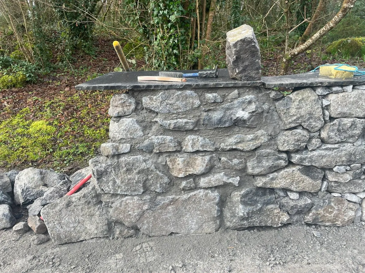 Drystone walls for traditional Irish natural look. Stone supply also available. Other type walls available upon request.