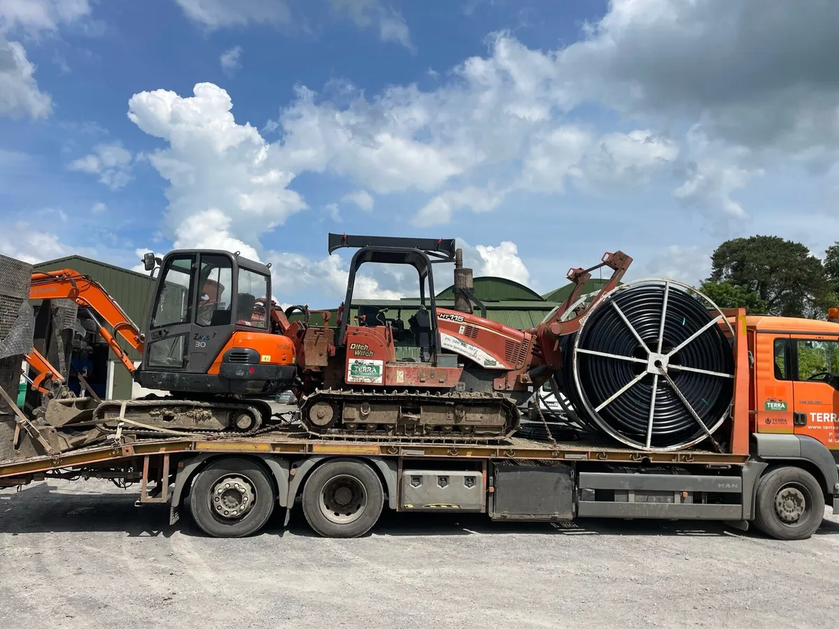 Most cost effective, tidy and fast method of installing ducting for fibre from pole to house to a depth up to 700mm. We can install on the verge of roads/lanes, through fields and along gravel road ways. With our unique vibratory mole ploughs on rubber or steel tracks no job is a challenge. We supply various size ducting on continuous rolls.We can also install armoured cable and water piping directly. Mini digger can be supplied also. Call or send a message for a keen quotation. We cover all of Ireland.