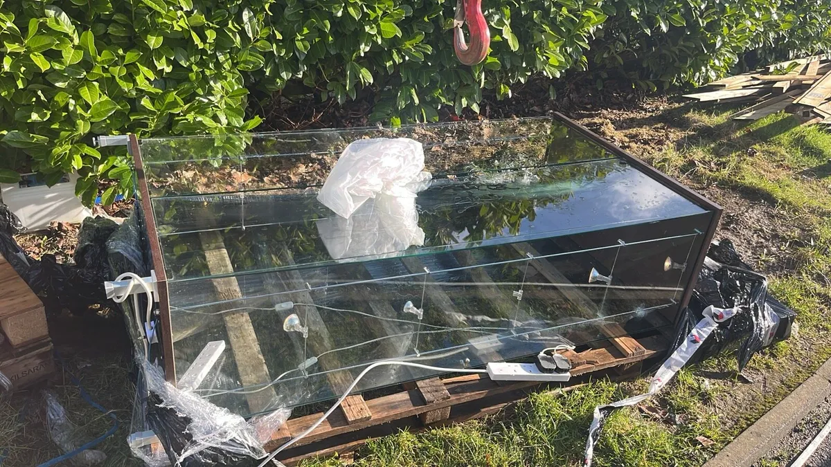 Selling 2 heavy glass cabinets glass shelfβs for them no keys the doors unlocked locks can be got of temu one big light works in the small unit and some spot lights work on the big one needs a few bulbs great condition