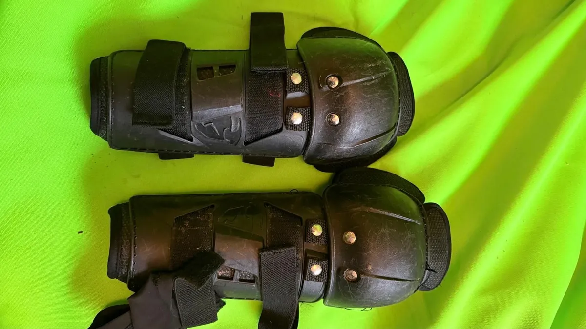Pair of hard shell elbow pads-all clean and in good condition. Straps and padding intact.
