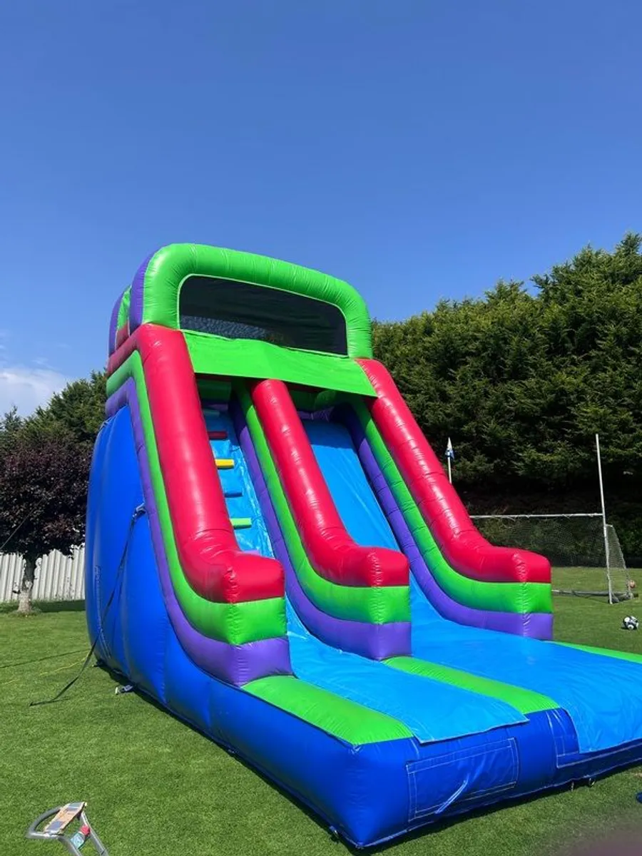 large Bouncy Castle Slide. In perfect condition. Ideal for birthdays, communion, confirmation and family fun in the garden. Comes with professional blower and Trolley I made to transport the Slide for storage.