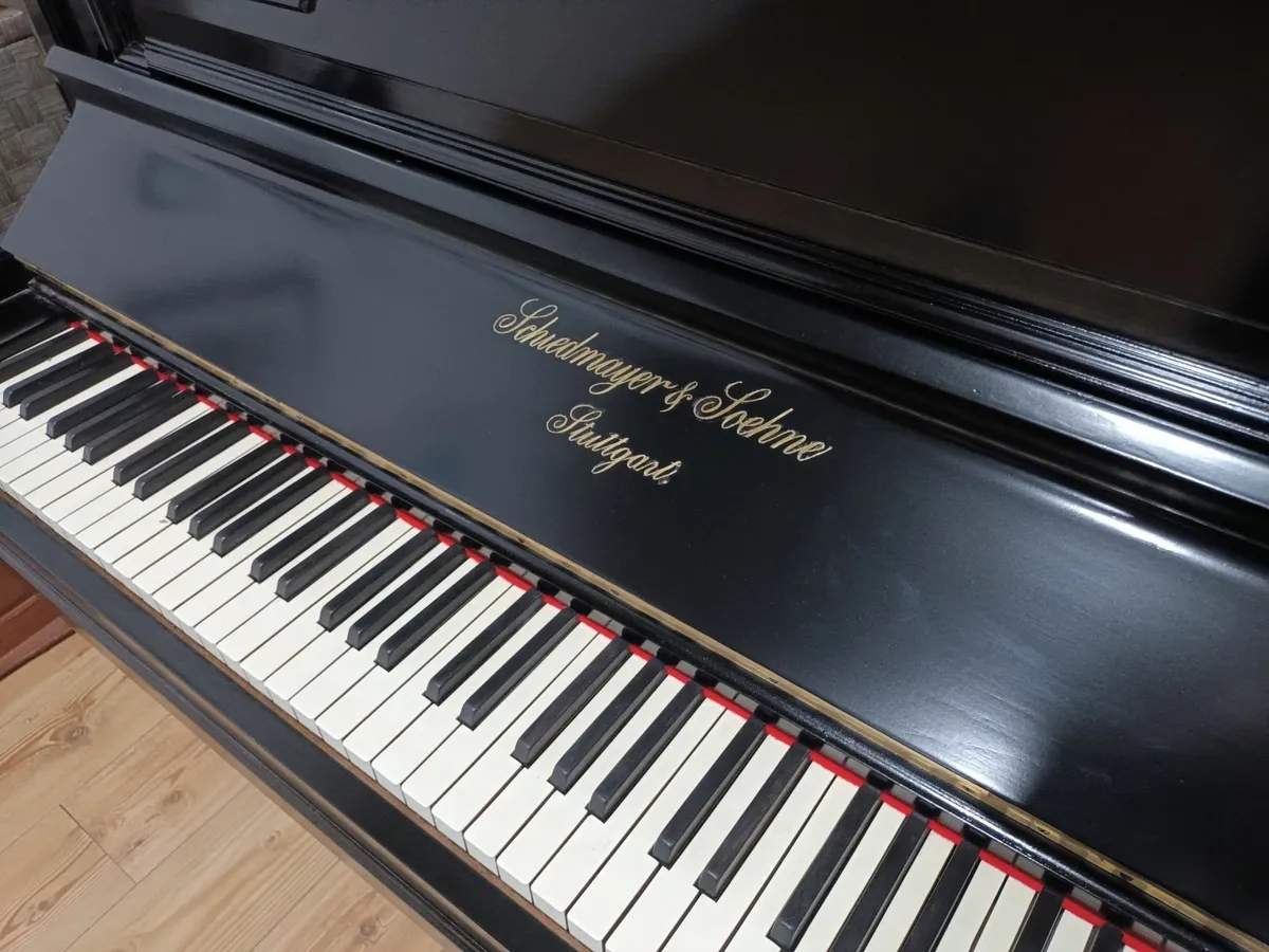 A beautiful, high quality 1903 Schiedmayer overstrung German piano with cast iron frame, original ivory keys and restored cabinet/brass. A mellow sounding instrument with a soft rounded tone and responsive touch, remarkably good for its great age and suitable for learning all the grades on. Schiedmayer are world renowned and this instrument is a true family heirloom that was built to last for centuries.