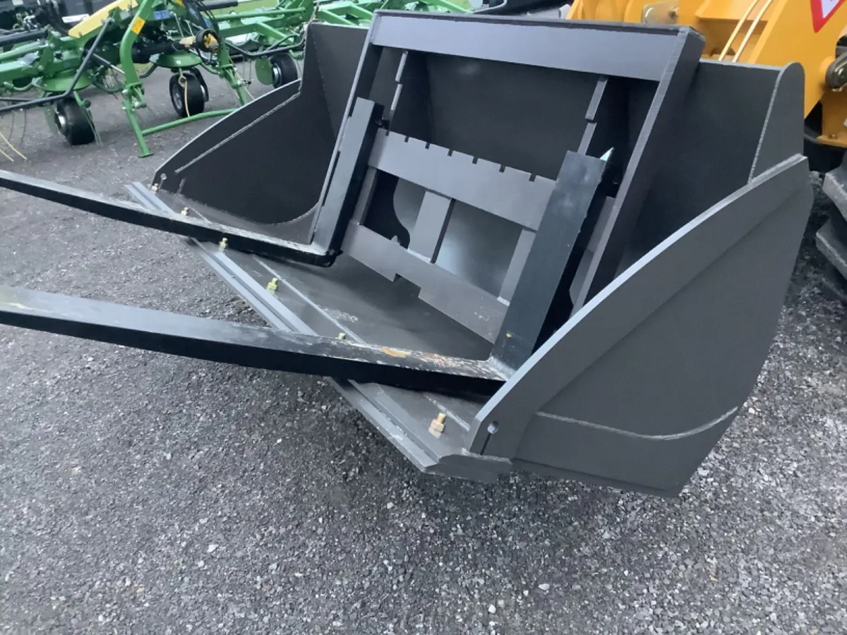 7 ft heavy duty bucket and pallet forks standard equipment.
