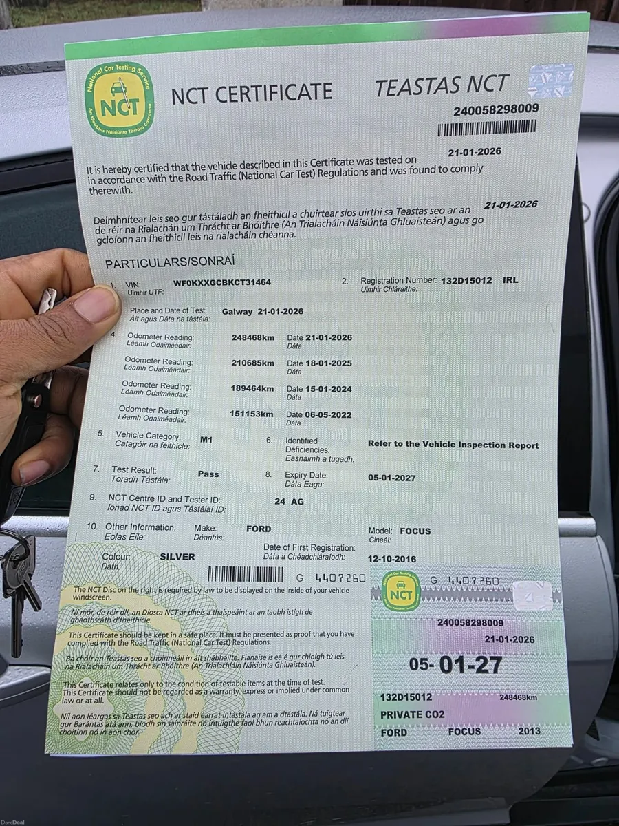 2013 Ford Focus 1.0 Ecoboost, Petrol , 5 Door,Comes with Tax for the rest of the year, NCT 05/01/2027,Drives like new,Alloys and brand new Tyres,Low Tax.Will Make a Nice First Time Car ,Easy insured. Transmission Manual ,Easy on Fuel as itβs a Petrol 1.0 Eco boost! New clutch, heated windscreen, reverse sensor, air conditioning system perfect π, new linkage inner and outer fitted.
