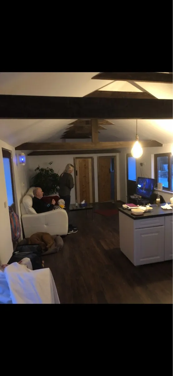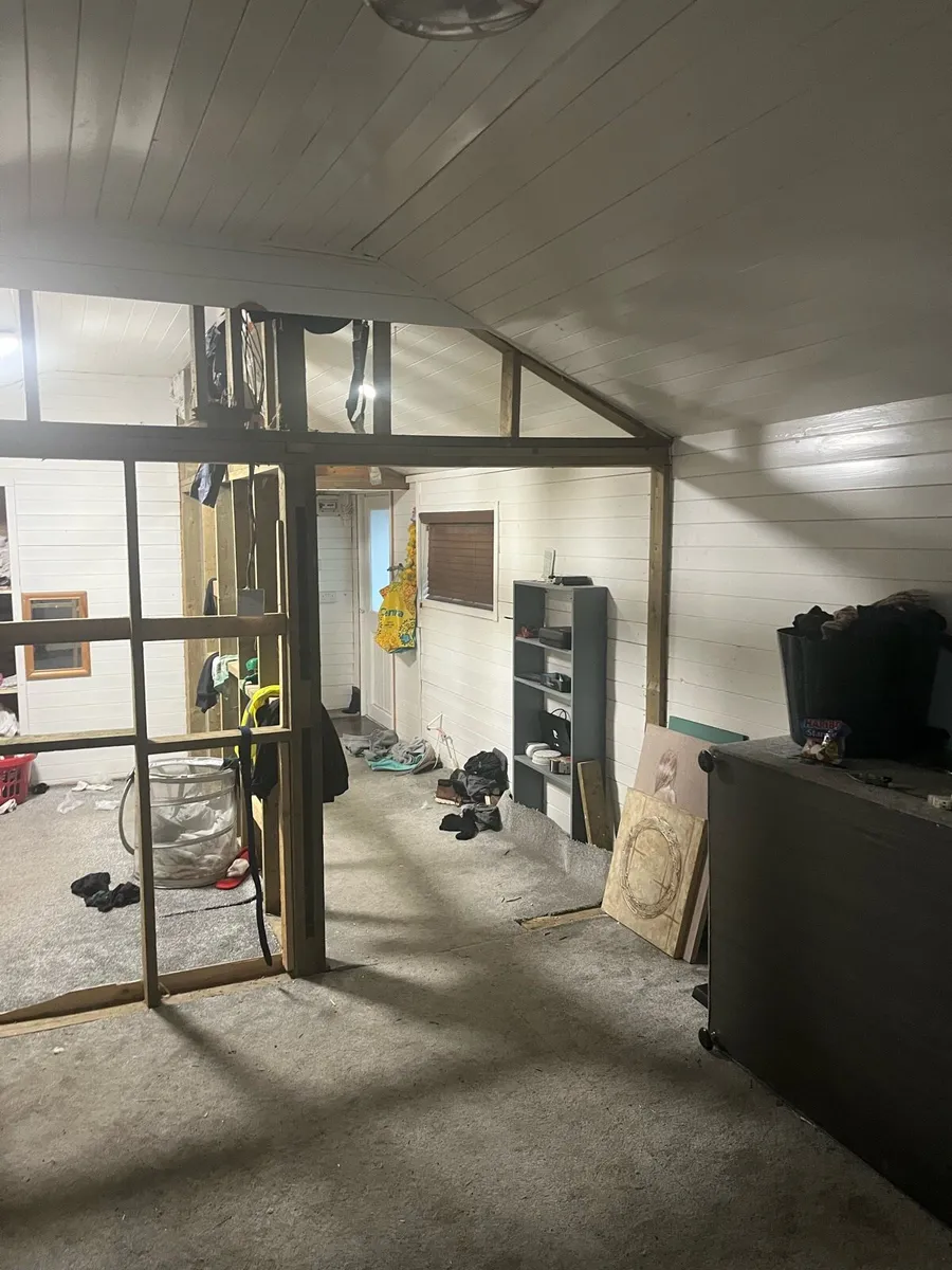 2 log cabins for sale . One cabin bought 6 years ago second hand , and second built from new . Both were joined together on site . Due for work reasons am now moving overseas . Was in the process of renovation to the older cabin as a renal , as seen in the photos . But now have decided to sell all . Need gone in 6 weeks . Photos also there of the new build of second cabin . No time wasters please . Sold as seen and transport is up to buyer . Rough guide . Older cabin cost 3 k to be craned and delivered from Wicklow mountains to Cavan . Both been sold together not separately. Cabin sizes are 10.5 meters x 3.5 meters . One cabin is open plan living with toilet . And other is bedrooms x3 with toilet/shower