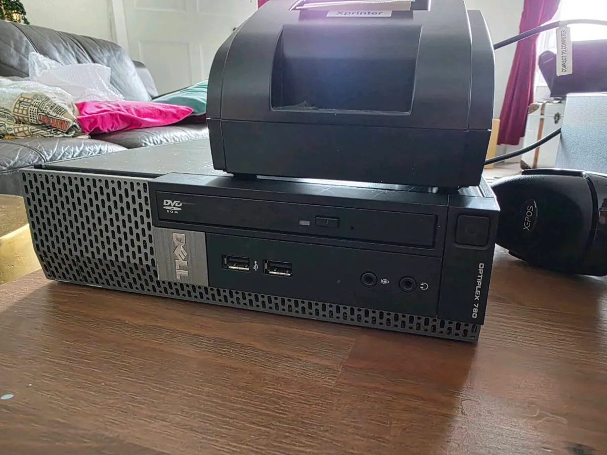 DELL POS till cash drawer with printer and scanner.