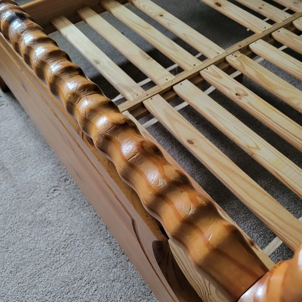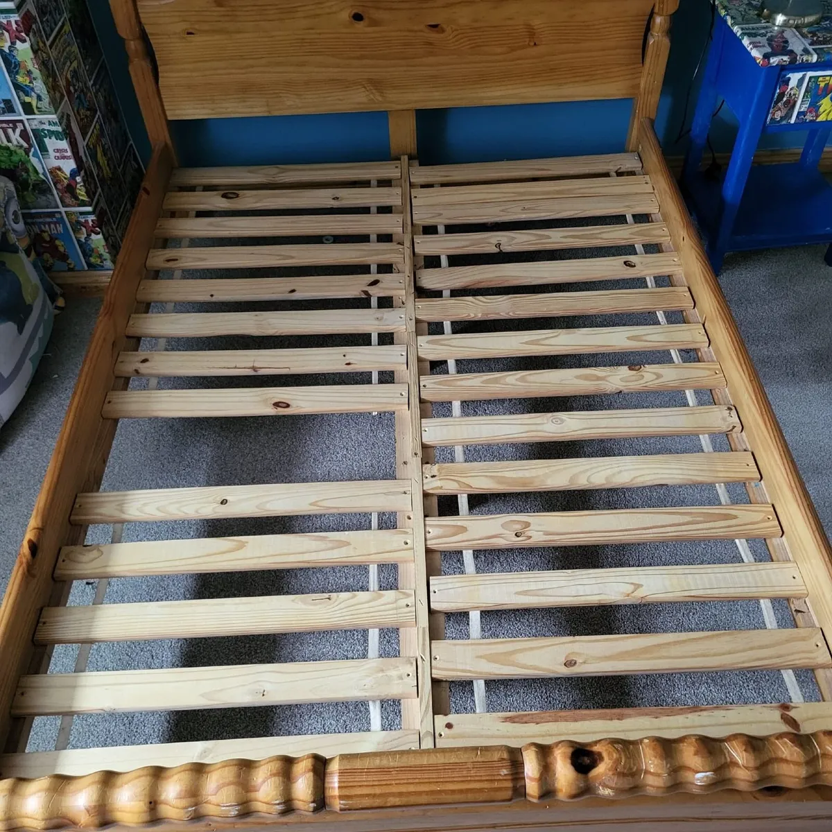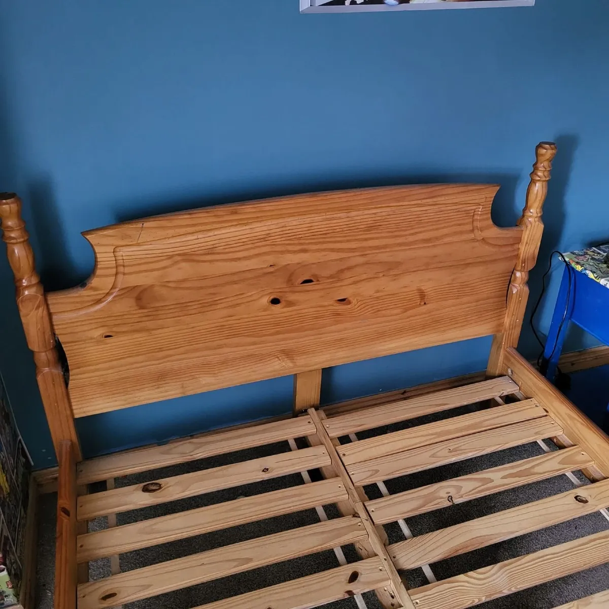 Selling a used 4ft 6 wooden bed frame (no mattress included), sturdy and in good condition. It has been previously used but is perfectly serviceable if youβre looking for a simple, solid frame. One of the lats are missing.