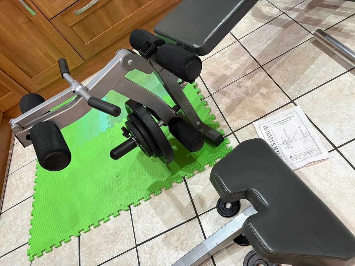 HEAVY OLYMPIC WEIGHT BENCH, BARS, WEIGHTS, LEG +++