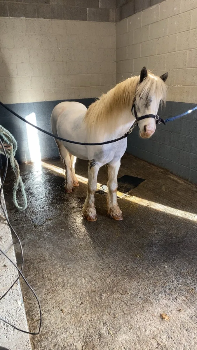 Passport and chipped, no breeding recorded but By Connemara stallion, out of small cob mare.