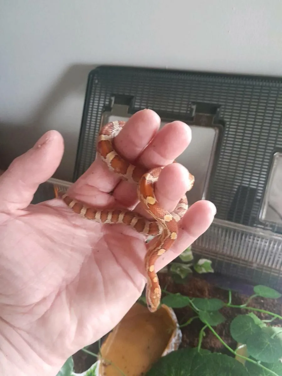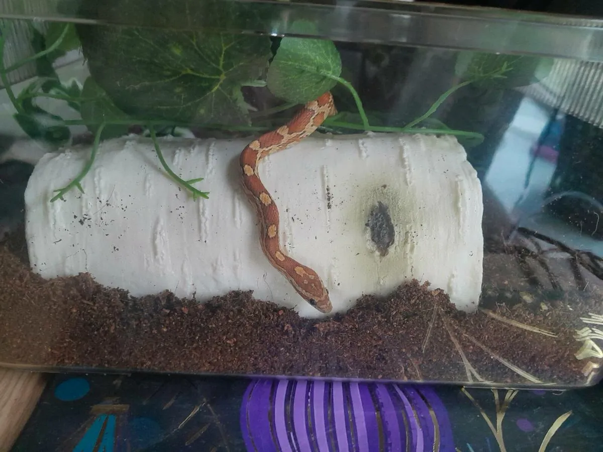 Beautiful orange female corn snake and large Exoterra enclosure for sale.