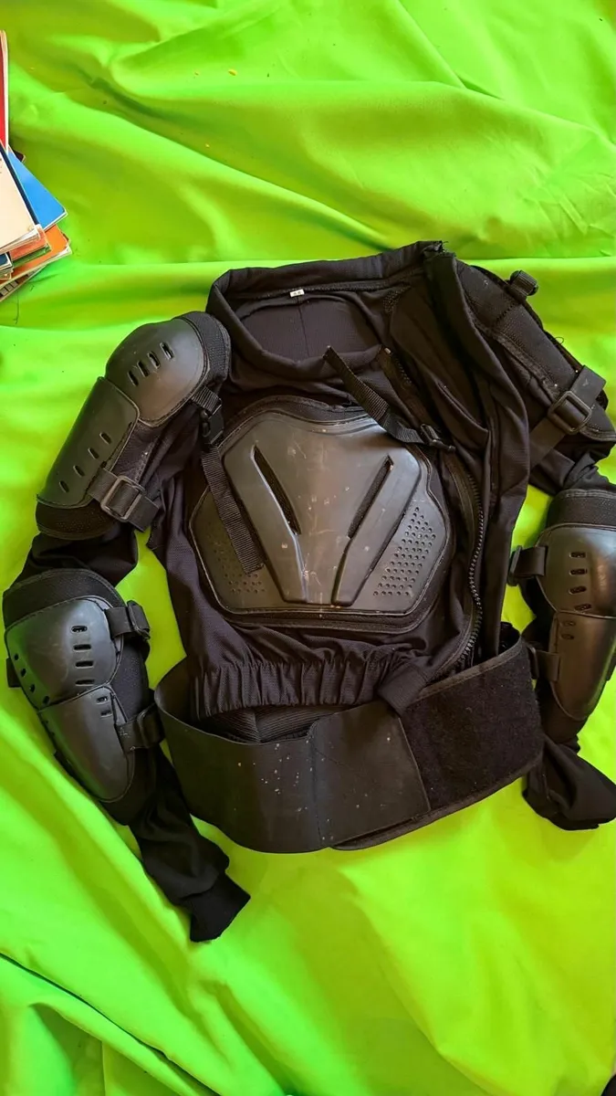 Body armour jacket with chest, back/spine, shoulder and elbow protection.