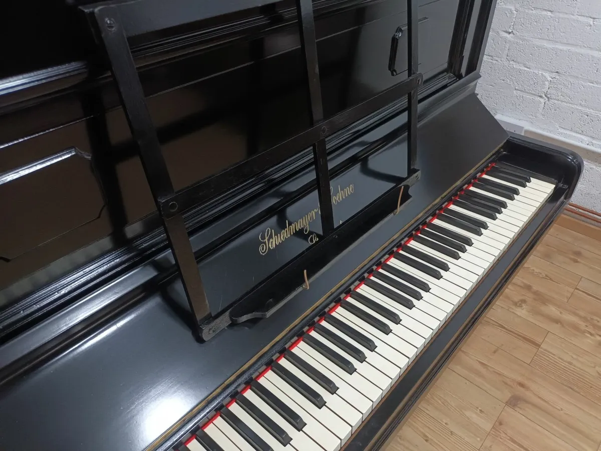 A beautiful, high quality 1903 Schiedmayer overstrung German piano with cast iron frame, original ivory keys and restored cabinet/brass. A mellow sounding instrument with a soft rounded tone and responsive touch, remarkably good for its great age and suitable for learning all the grades on. Schiedmayer are world renowned and this instrument is a true family heirloom that was built to last for centuries.